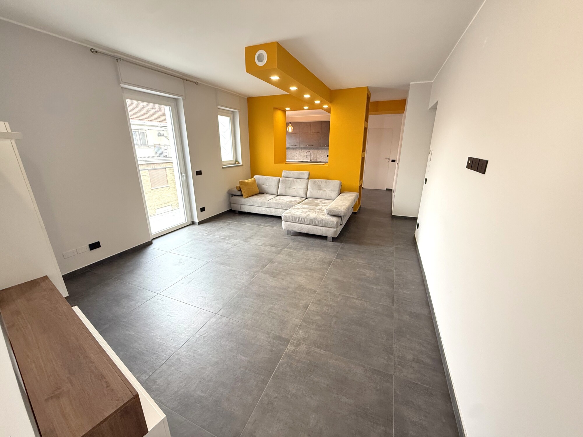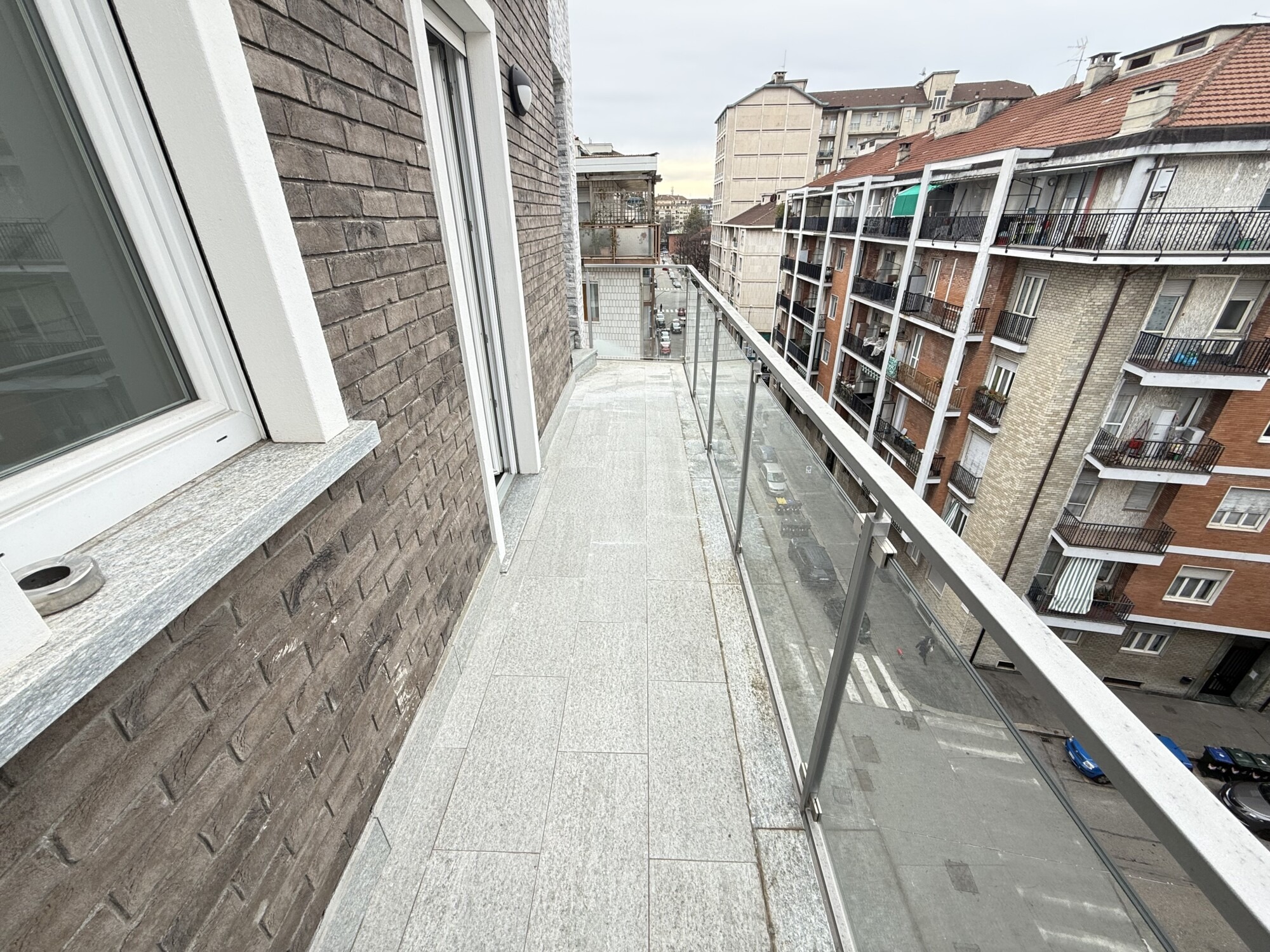 L’immobile, unico al piano, è composto da ingresso living su salone, cucina abitabile, camera matrimoniale, 2 camerette e doppi servizi. Tre balconi e collegamento con scala che porta al piano 6° dove troviamo una terrazza esclusiva di ampia metratura.