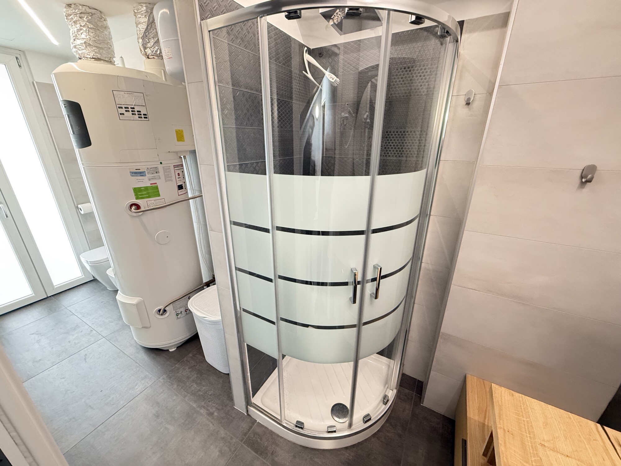 Acqua calda autonoma in pompa di calore. Tapparelle elettriche con comando centralizzato. Predisposizione per impianto di antifurto. Videocitofono.