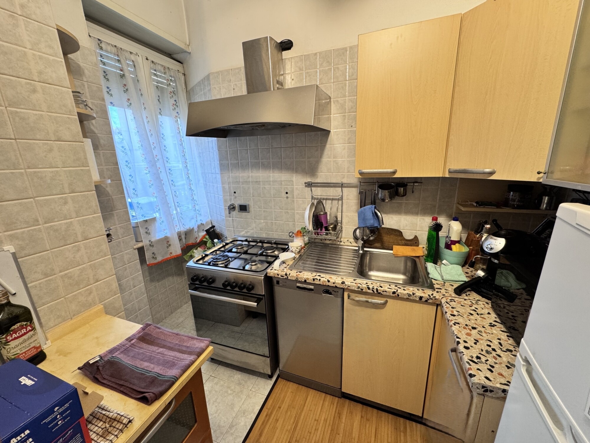 L’appartamento, in stabile anni ’60 in ottime condizioni, è sito al piano 1° con ascensore di recente sostituzione ed è composto da ingresso, soggiorno, ampio cucinino, balcone con tenda da sole, camera matrimoniale e bagno finestrato.